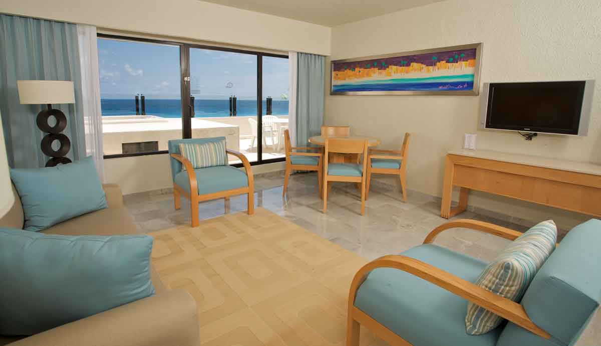 We're pleased to be able to offer a limited number of spacious, dramatic suites overlooking either the gorgeous Caribbean Sea or the equally romantic lagoon. Each boasts a private Whirlpool with plenty of room for entertaining or just relaxing. Accommodating, inviting and spotlessly maintained, they're intended for guests who place a premium on space, comfort and luxury. At 1,216 square feet, the Presidential Suite, can be had with 2 bathrooms including both a tub and shower. Select units can extend to an adjoining Studio Room, to increase occupancy by two more adults. All suites include comfortable living & dining areas along with a kitchenette and each comes complete with 2 luxury double beds and 1 Murphy (wall) bed that features the same luxurious padded hotel mattress and bedding. The marble floors are spotlessly clean and each suite includes individually controlled air conditioning, 27” flatscreen cable TV, direct dial telephone, and secure electronic key. In-room strong boxes, turndown service, and irons/ironing boards are available upon request.